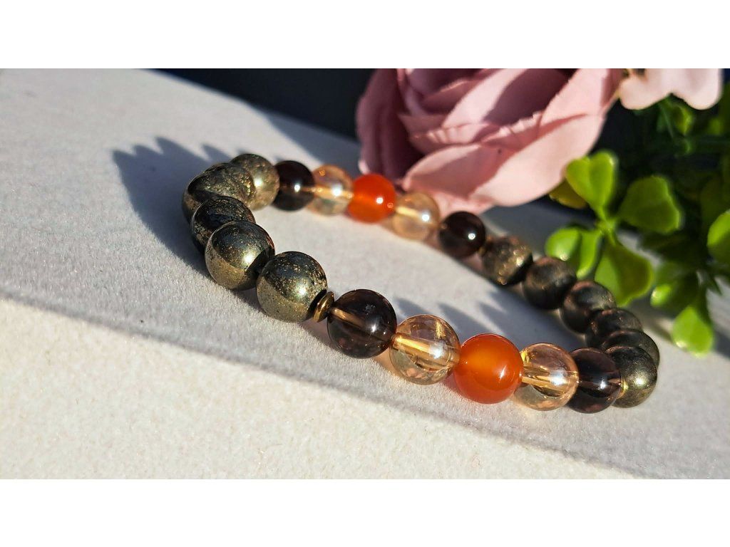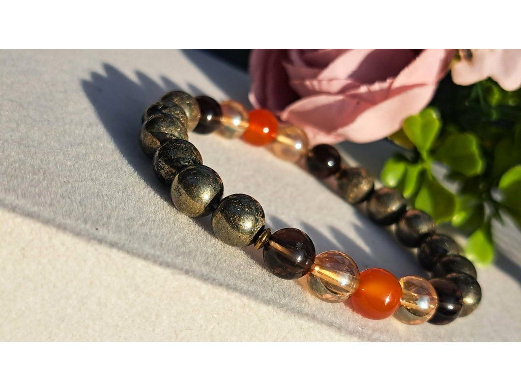 "Lendület" karkötő pirit, füstkvarc, arany aurakvarc, karneol