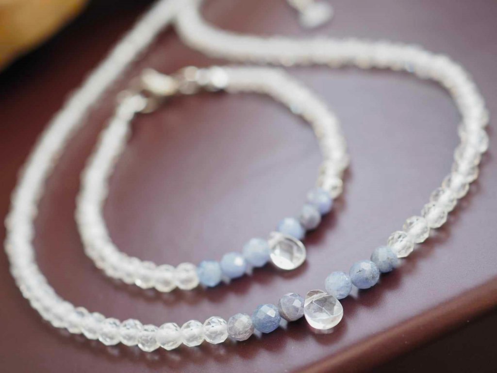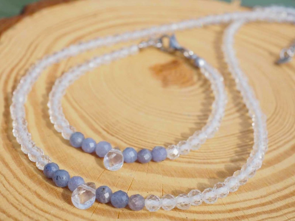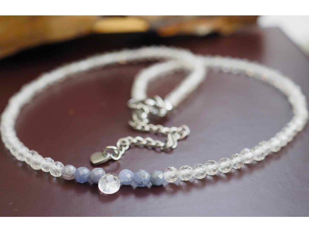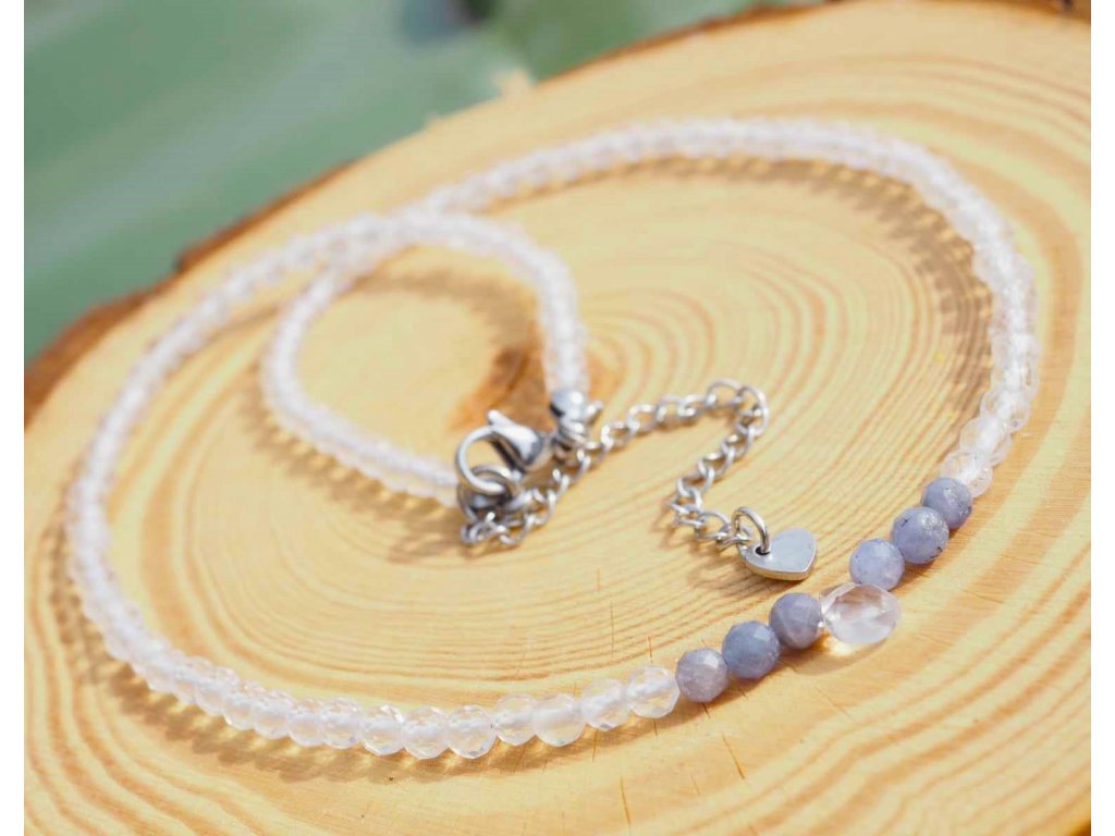 Hegyikristály nyaklánc, tanzanittal 4 mm-es fazettált ásványokból