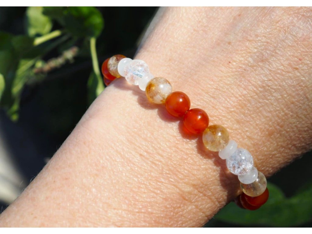 Karneol karkötő citrinnel (AB) és repesztett hegyikristállyal, hegyikristály tárcsa köztesekkel. 8 mm-es golyókkal.