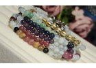 Topáz, rutilkvarc, prehnit, malachit, apatit, csaroit, ametiszt, aragonit karkötő 8 mm-es kövekből
