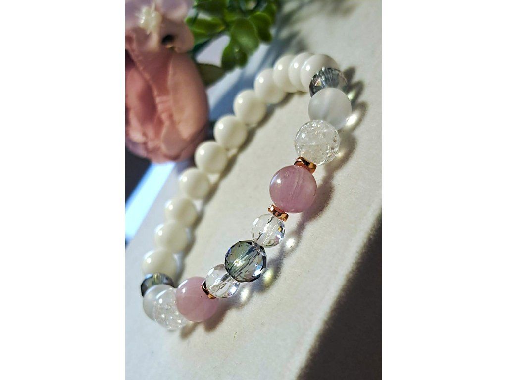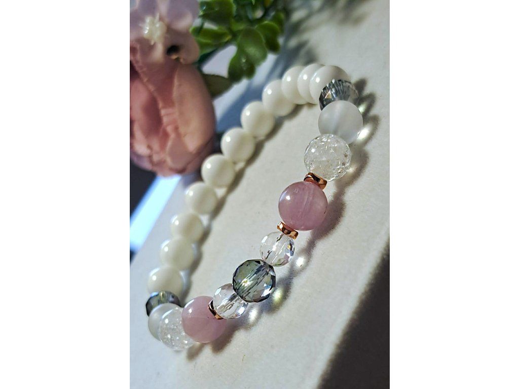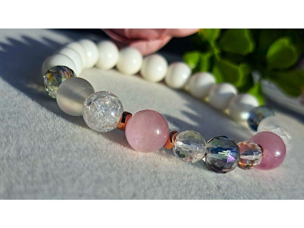 Valentin 1. karkötő aurakvarccal, hegyikristállyal, kunzittal, kagylóhéjgyönggyel